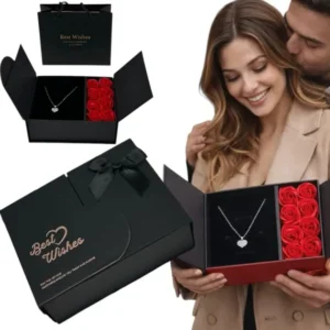 Cadou romantic „Best Wishes” – inimă cu trandafiri din săpun + colier
