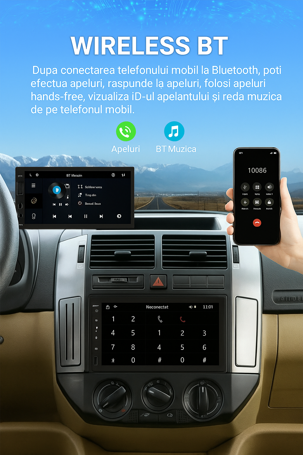 Bluetooth: Versiunea 5.0 (nume BT: CAR BT)