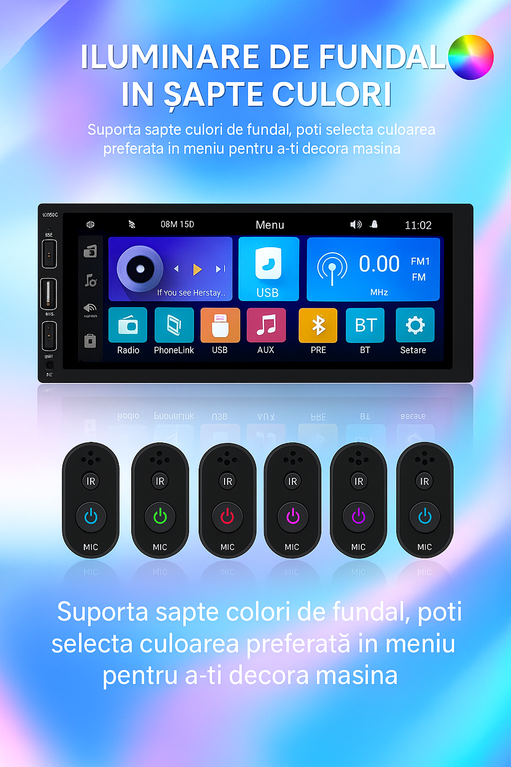 ● Mirror Link: Compatibil cu Android/iPhone pentru oglindirea ecranului telefonului pe ecranul mașinii prin cablul original USB.