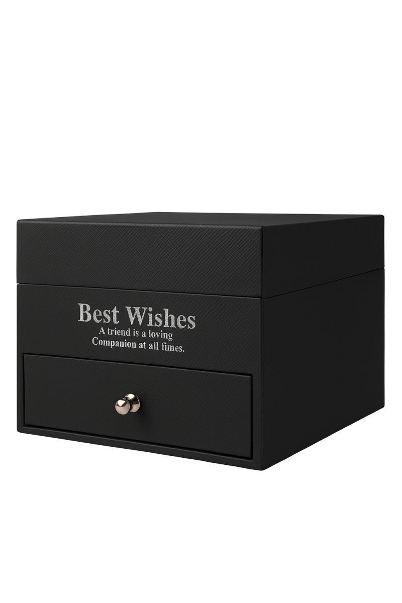 Design cutie: structură pe două niveluri, cu sertar pentru ceas