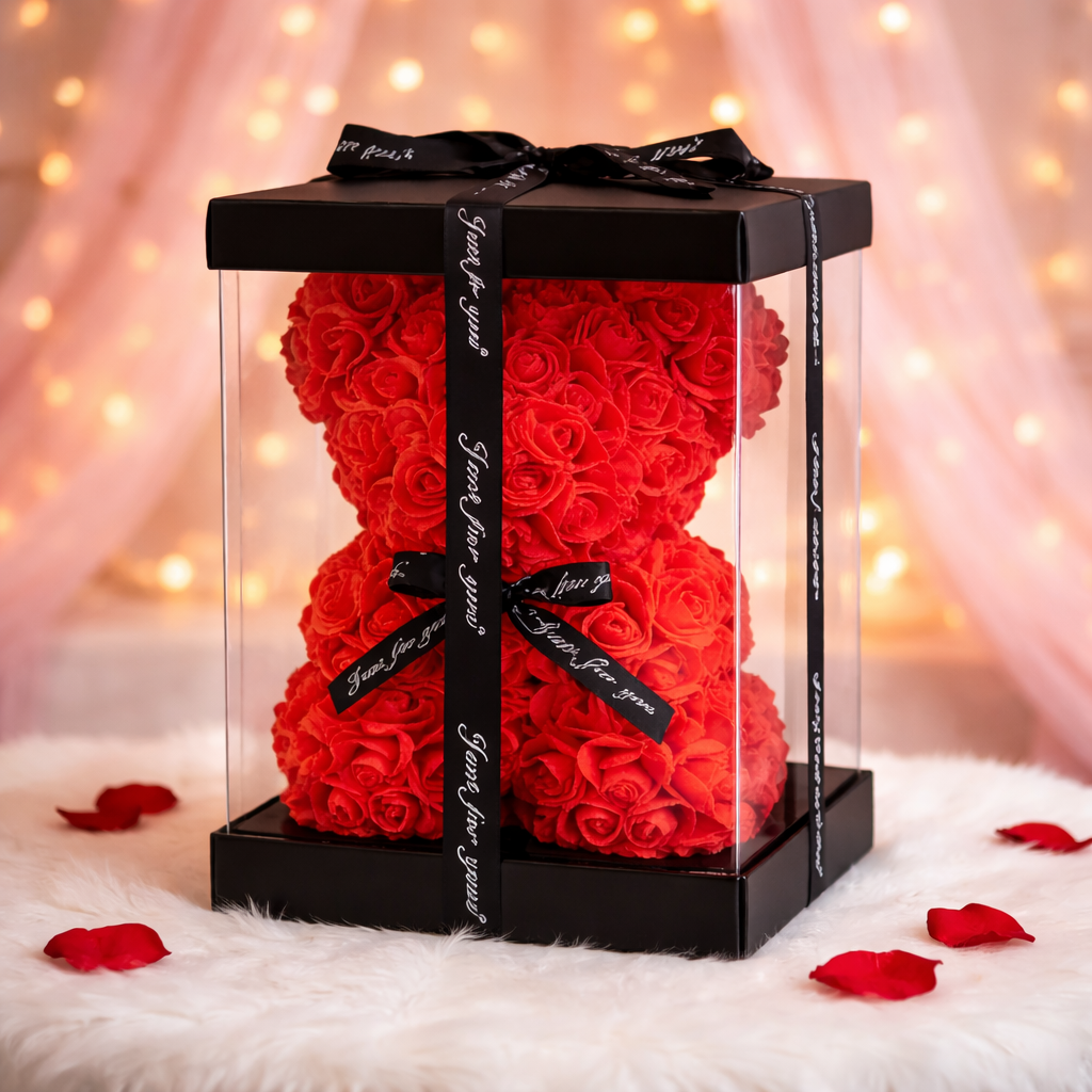 Potrivit pentru aniversări, Valentine’s Day, zile de naștere, evenimente speciale sau ca surpriză oferită din inimă, acest ursuleț transmite afecțiune, recunoștință și dragoste într-un mod memorabil. 🌹🐻
